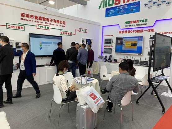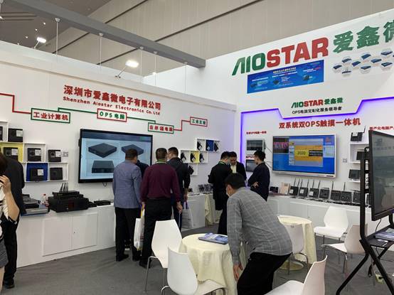 本次展會愛鑫微電子(AIOSTAR)向大家展示的是劃時代的OPS新產品愛鑫微AOS-SOWKl45C  WhiskeyLake-u  I3 8145U/I5 8265U/I7 8565U 高性能高主頻的4K 60HZ OPS電腦模塊,配備DP顯示接口、雙網(雙千兆網口)、6USB是其最大的特色,DP有著更好的顯示效果,對高清視頻的兼容度更高,并且擁有雙千兆網口,方便進行內外網信息隔離同時可以進行微課錄播以及監控的擴展功能。吸引眾多觀眾駐足參觀、拍照、詳細了解產品,現場盛況空前。