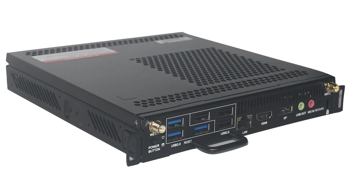 | 4K/5K/8K顯示OPS插拔式電腦(支持102寸一體機) OPS插拔模塊式安裝 Alder Lake-u I3 1220P/I5-1240P/I7-1360P 支持6組USB(3組USB3.1 /3組USB2.0) 支持萬兆網口、支持1*3.0 TYPE-C 支持1xHDMI /OPS接口支持HDMI 2.0+DP1.4 支持4K/5K/8K(3840*2160、5120*2880、7680*4320) 支持網絡喚醒、EUP節能、上電開機、看門狗等 產品符合CE FCC ROHS規范 尺寸:180MM*195MM*30MM |