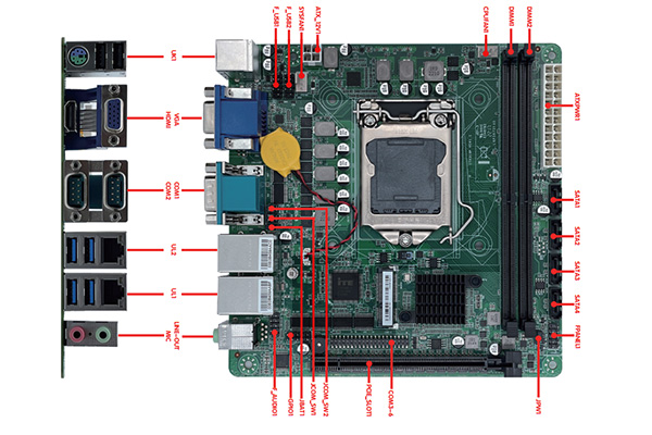 | 1. 支持第6、7、8、9代LGA1151 Intel® Celeron/Pentium/Core™ i3/i5/i7處理器; 2. 2*DIMM內存插槽,支持單通道1866/2133/2400 DDR4/1.2V內存,最大支持32GB; 3. 支持VGA、HDMI顯示接口; 4. 支持2個realtek RTL8111H千兆網絡; 5. 支持1個Mini-PCIe(默認為MSATA,可選支持WIFI); 6. 支持4個USB3.0和6個USB2.0接口; 7. 支持6個RS232串口,可選支持2個RS485; 8. 內置1個PCIe3.0 X16 SLOT; 9. 支持AT |