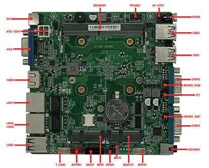 | 集成Intel®Celeron J6412 2.0GHz四核處理器,兼容Intel®Elkhart Lake全系列CPU 2* SODIMM插槽,支持雙通道2400MHz DDR4內存,最大支持32GB 顯示支持VGA、HDMI雙顯 可支持4個intel I225V或I226 2.5千兆網絡 可支持1個Mini-PCIe(WIFI/4G)和1個M.2 Key-M 2280/2242 PCIE/SATA SSD 可支持2個USB3.1接口和6個USB2.0接口 內置2個RS232串口,可選支持1個RS485 無風扇散熱,可制作成封閉式整機,做到防塵防潮 支持-10~60度寬溫工作 支持AT和ATX模式切換,12V DC電源供電 |