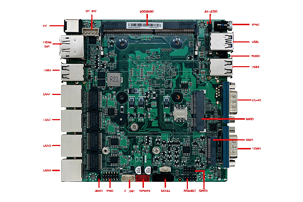 | 1.集成Intel®Celeron N100 0.8GHz四核處理器,兼容Intel®Alder Lake全系列CPU 2.1* SODIMM插槽,單通道3200MHz DDR4內存,最大支持16GB 3.顯示支持DP、HDMI、HDMI2(可選),最高可支持三顯 4.可支持4個intel I225V或I226 2.5千兆網絡 5.支持1個Mini-PCIe(WIFI/4G)和1個M.2 Key-M 2280/2242 PCIE/SATA SSD 6.可支持2個USB3.1接口和6個USB2.0接口,1個Type-c接口(USB2.0) 7.內置2個RS232串口,可選支持1個RS485 8.無風扇散熱,可制作成封閉式整機,做到防塵防潮 9.支持-10 |