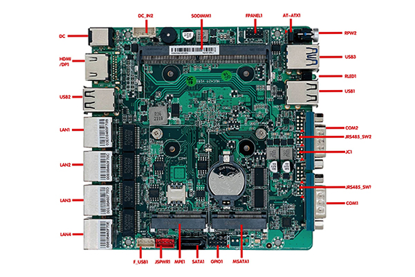 | 1.集成Intel®Celeron J4125 2.0GHz四核處理器,兼容Intel® Gemini Lake-R 全系列CPU 2.1* SODIMM插槽,支持單通道2400MHz DDR4內存,最大支持16GB 3.顯示支持HDMI、DP雙顯(默認只支持HDMI) 4.可支持4個intel I225V或I226 2.5G千兆網絡 5.可支持1個Mini-PCIe(WIFI/4G)和1個MSATA 6.可支持2個USB3.0接口和5個USB2.0接口 7.內置2個RS232串口,可選支持2個RS485 8.無風扇散熱,可制作成封閉式整機,做到防塵防潮 9.支持-20~60度寬溫工作 10.支持AT和ATX模式切換,12V~19V DC電源 |
