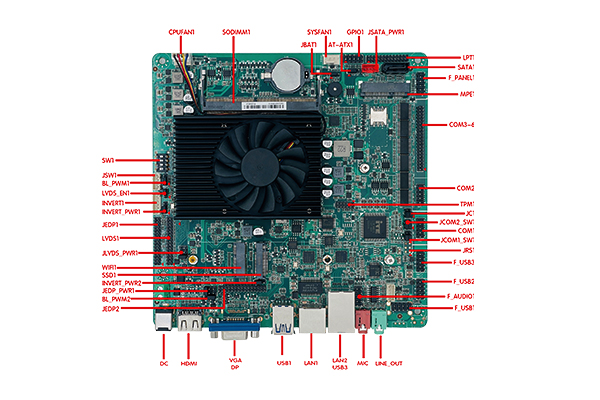 | 1.集成Intel® Alder Lake 0.8GHz四核處理器,兼容Alder Lake-N系列CPU 2.1* SODIMM插槽,支持單通道3200MHz DDR4內存,最大支持16GB 3.支持四個獨立顯示接口VGA to DP、HDMI、LVDS to eDP1、eDP2;(可支持雙eDP) 4.支持2個intel i226千兆網絡(可選單網) 5.支持1個M.2 KeyE(WIFI/BT)和1個Mini-PCIE(4G) 6.支持1個M.2 keyM 2280 PCIE/SATA SSD 7.支持9個USB接口,可支持4個USB3.0 8.內置6個RS232串口,默認內置兩個RS485,可選支持4個RS485 9.采用雙滾珠智能風扇,可保障系統長時間 |