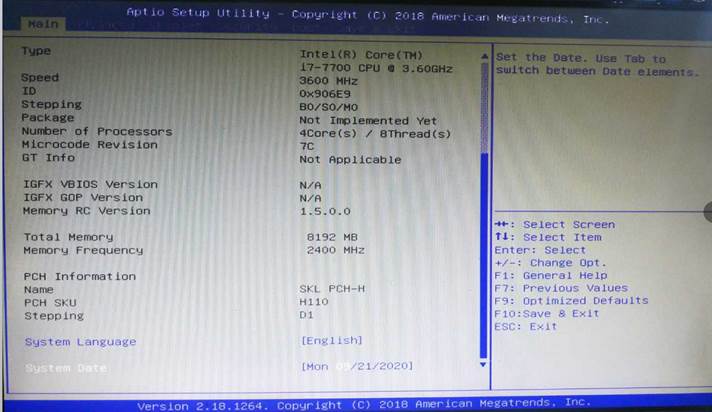 第一項、Main : 選著SYSTEM Date 進行時間設置。