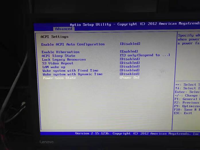 2.選擇ACPI Settings回車,進入下圖:
